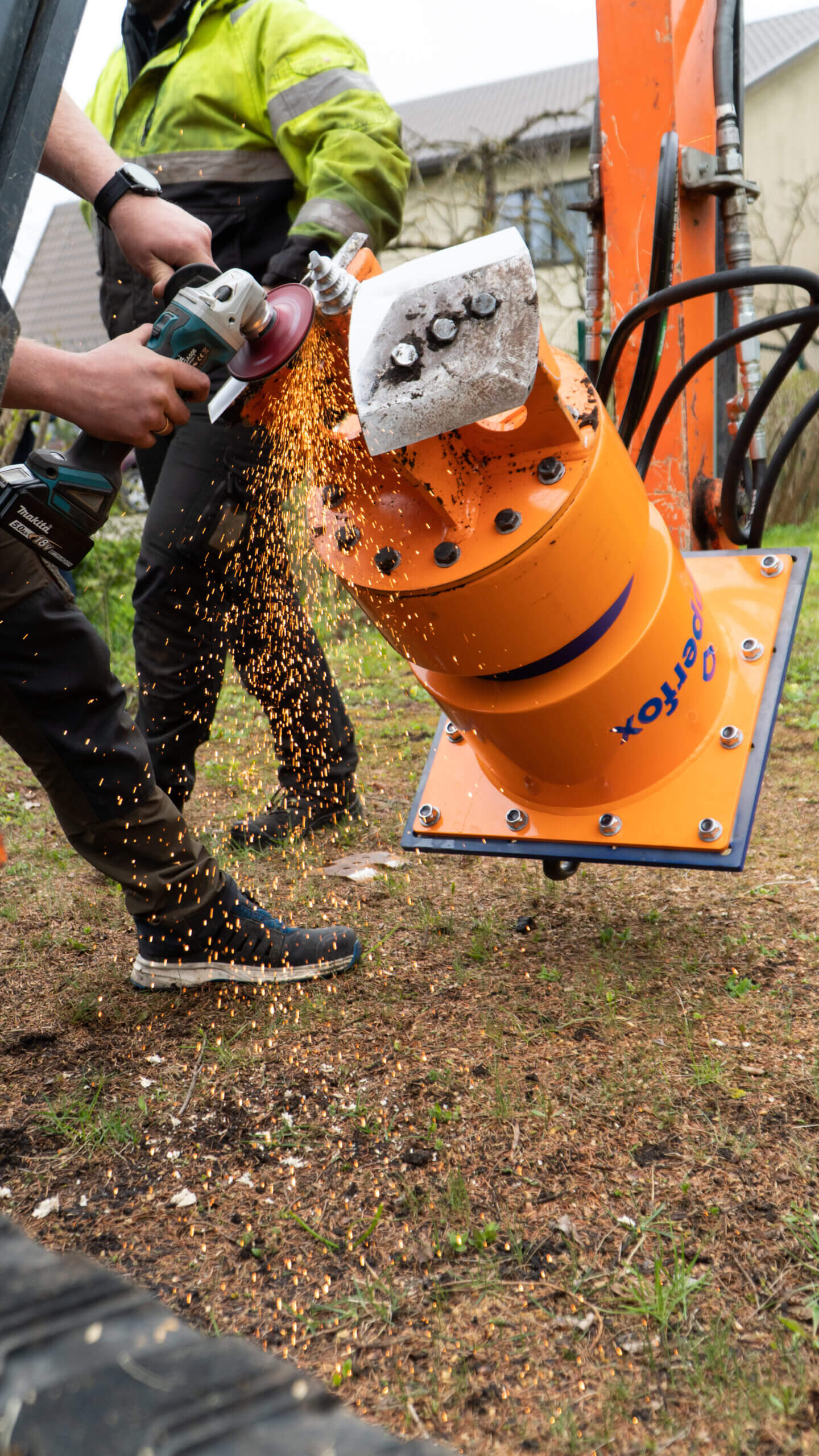 Pařezová fréza Dipperfox 400 pro bagry 3-6 tun. Kompaktní rozměry, vysoký výkon. Ideální pro zahrady a městskou zeleň.