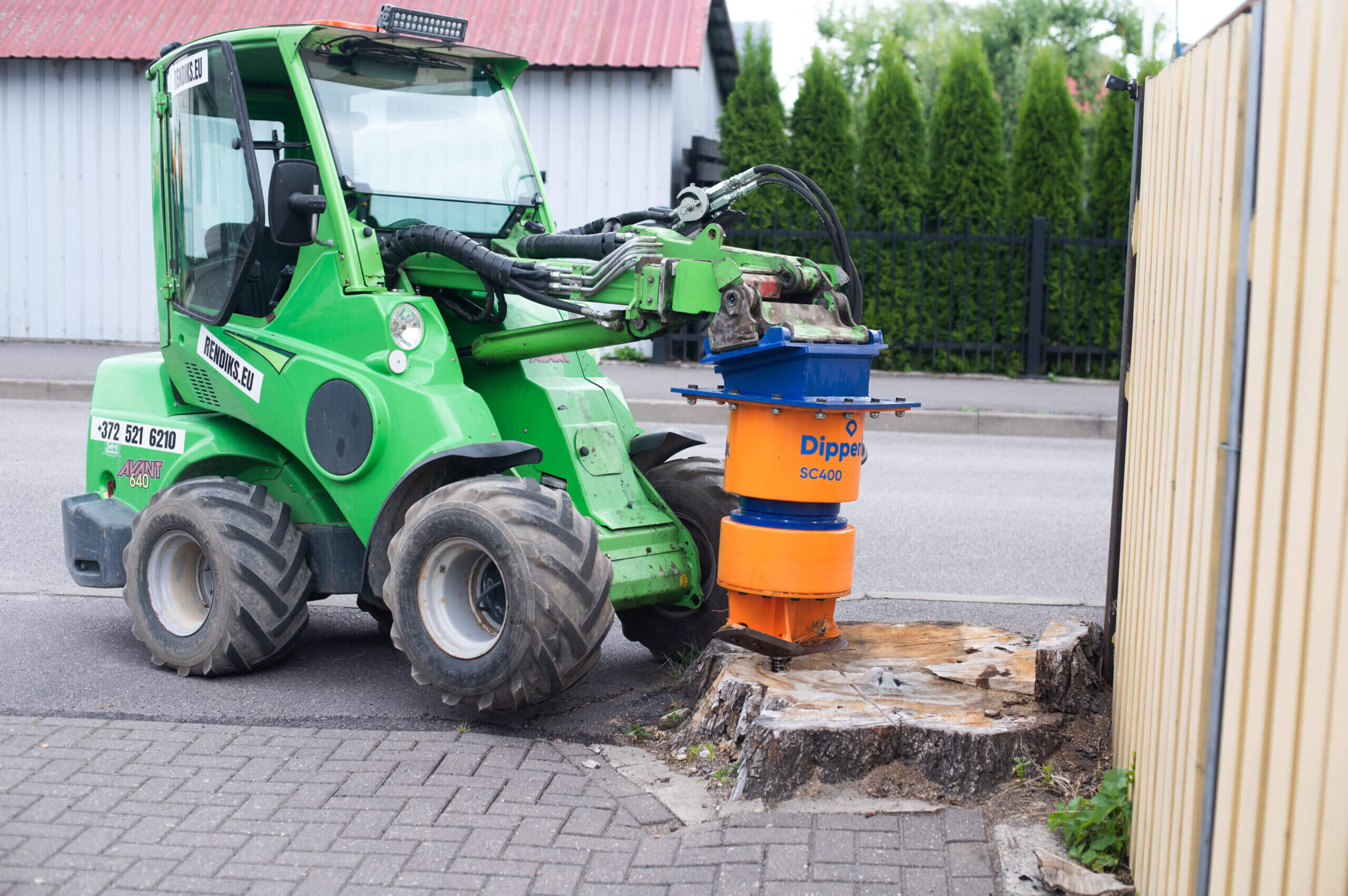 Pařezová fréza Dipperfox 400 pro bagry 3-6 tun. Kompaktní rozměry, vysoký výkon. Ideální pro zahrady a městskou zeleň.